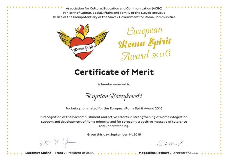 We are happy to announce that Krystian Barzykowski’s team with Joanna GrzymaΕa – MoszczyΕska from our Centre is nominated to European Roma Spirit Award 2016 for their book ‘Selected problems of psychological diagnosis of children and adolescents in the context of multiculturalism and multilingualism’. The last update says they are in finals – let’s keep our fingers crossed π The book is also recommended by the Council of Europe as a good practice. Well done!
